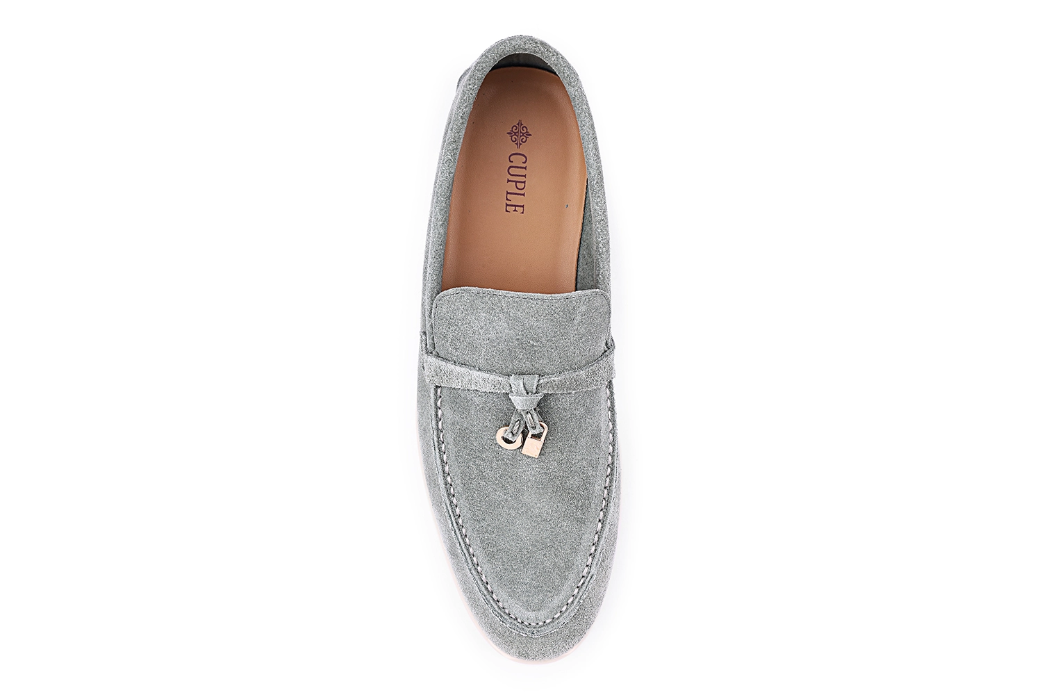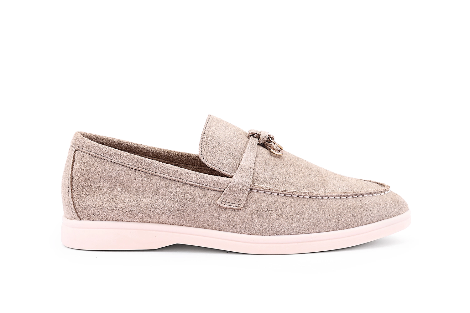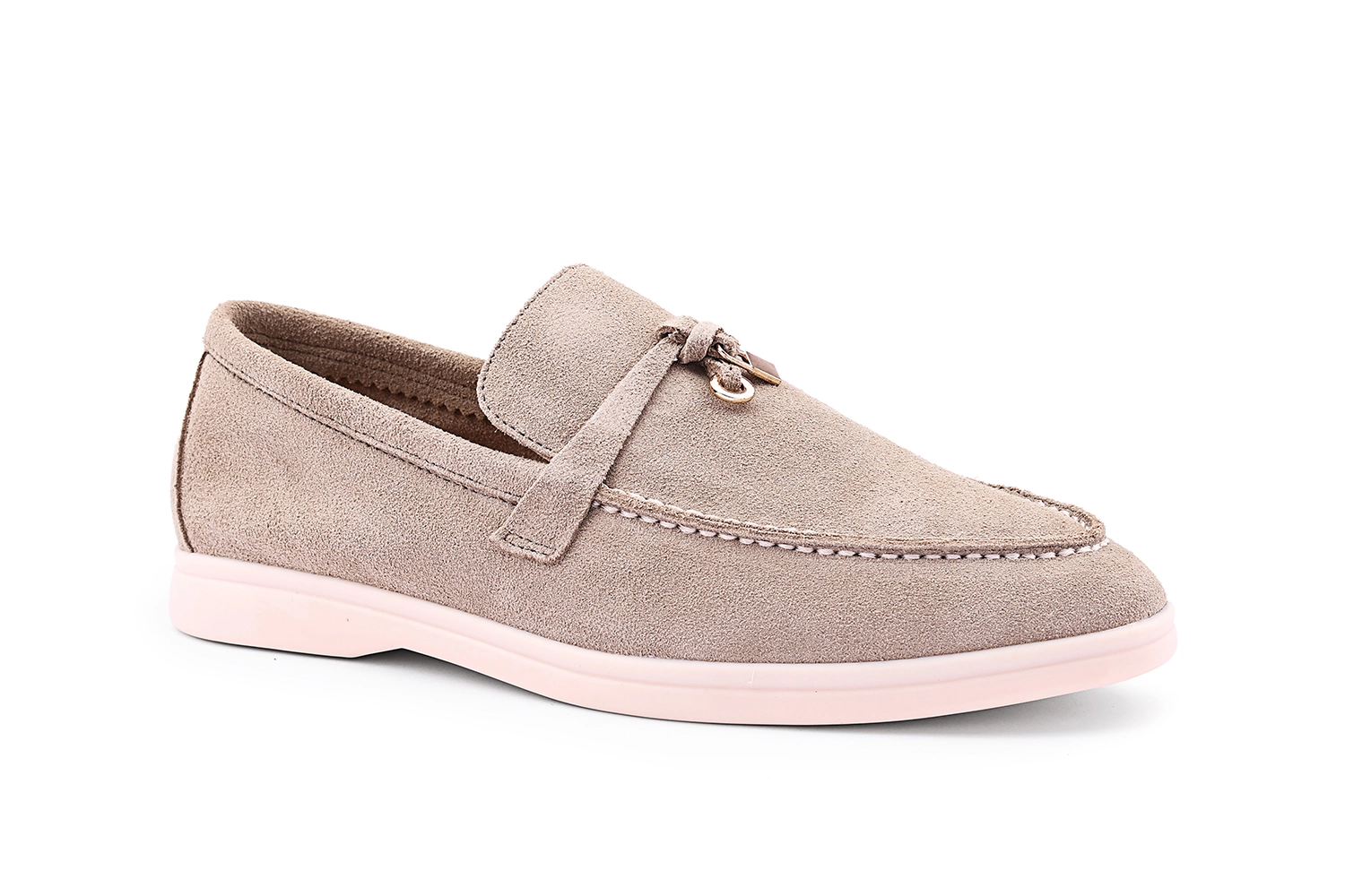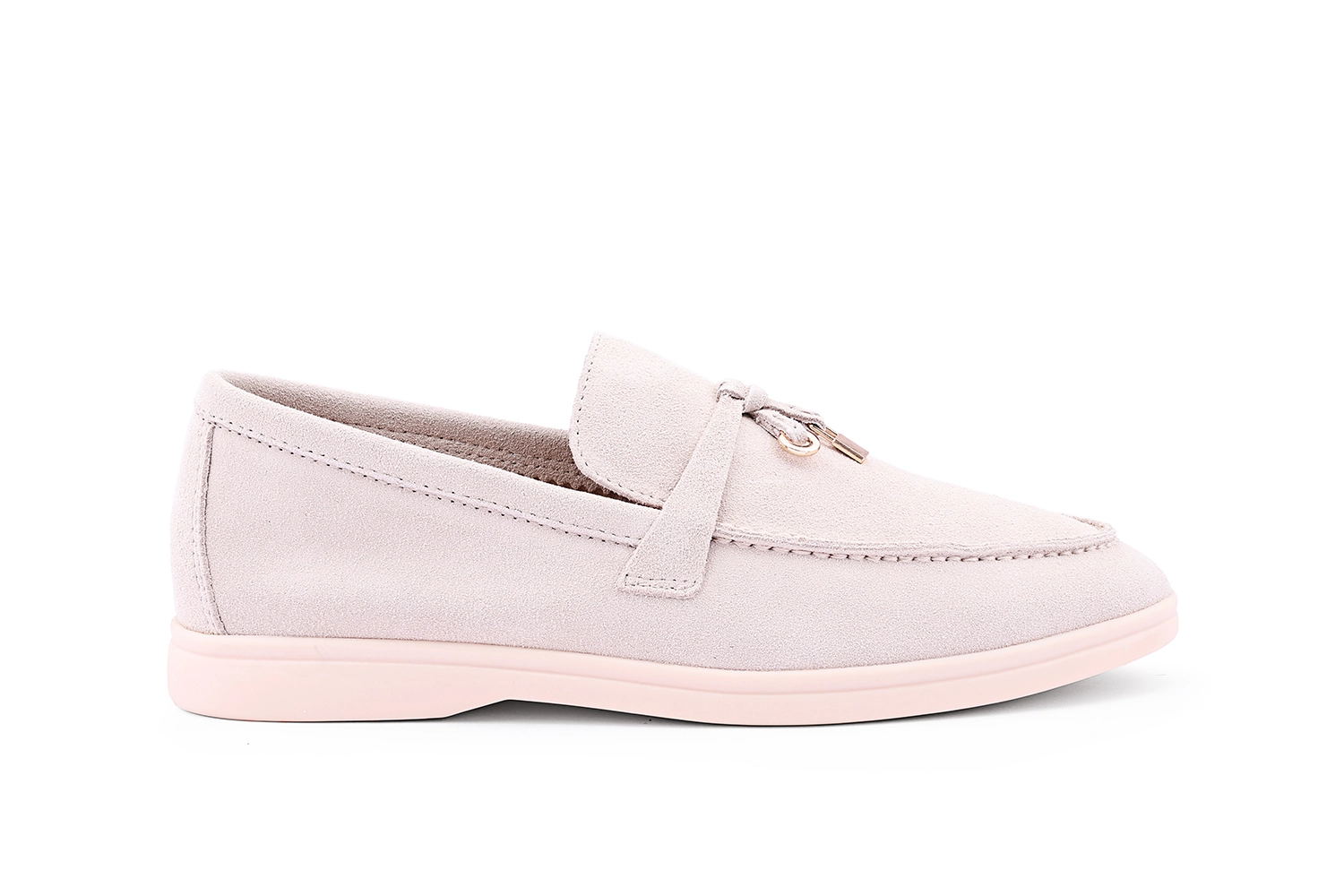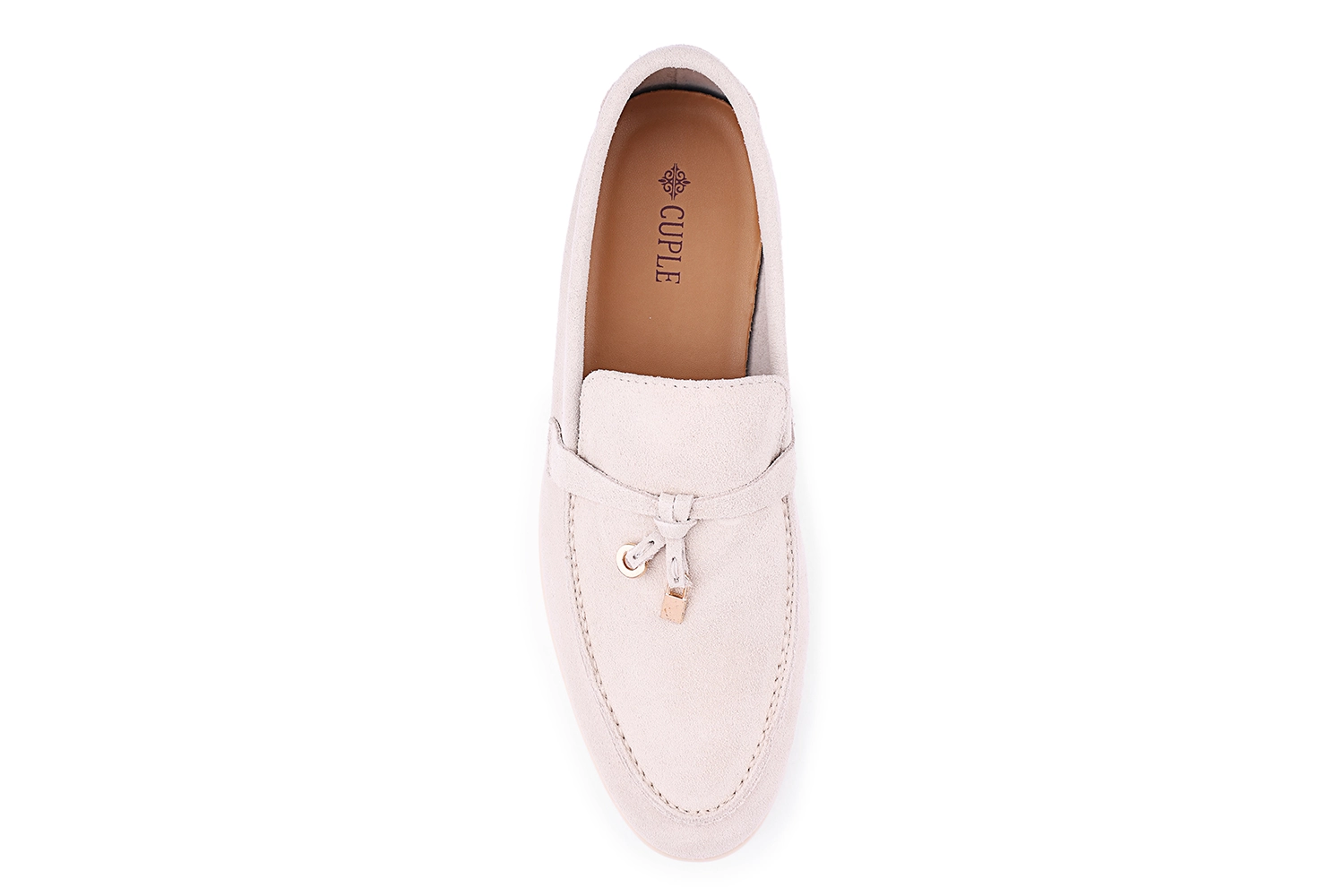 Soft beige suede loafers with a clean, modern tassel finish. A versatile flat perfect for smart casual looks and all-day comfort.