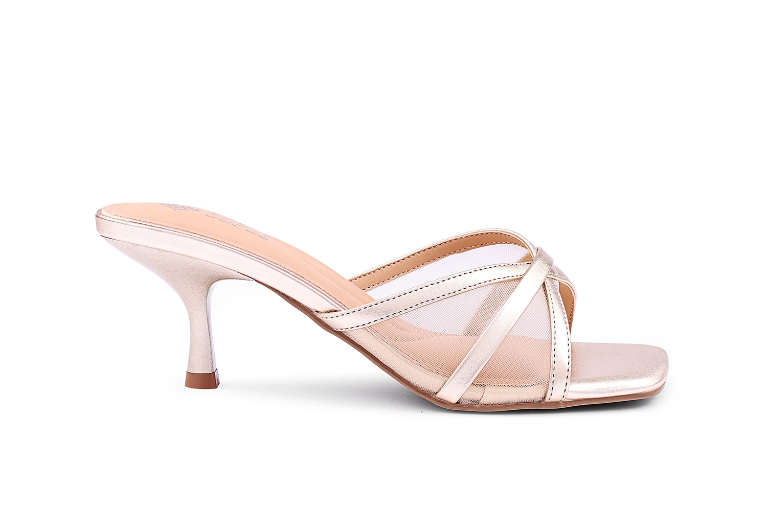 حذاء كعب عالي بيج بحزام خلفي مع شبك