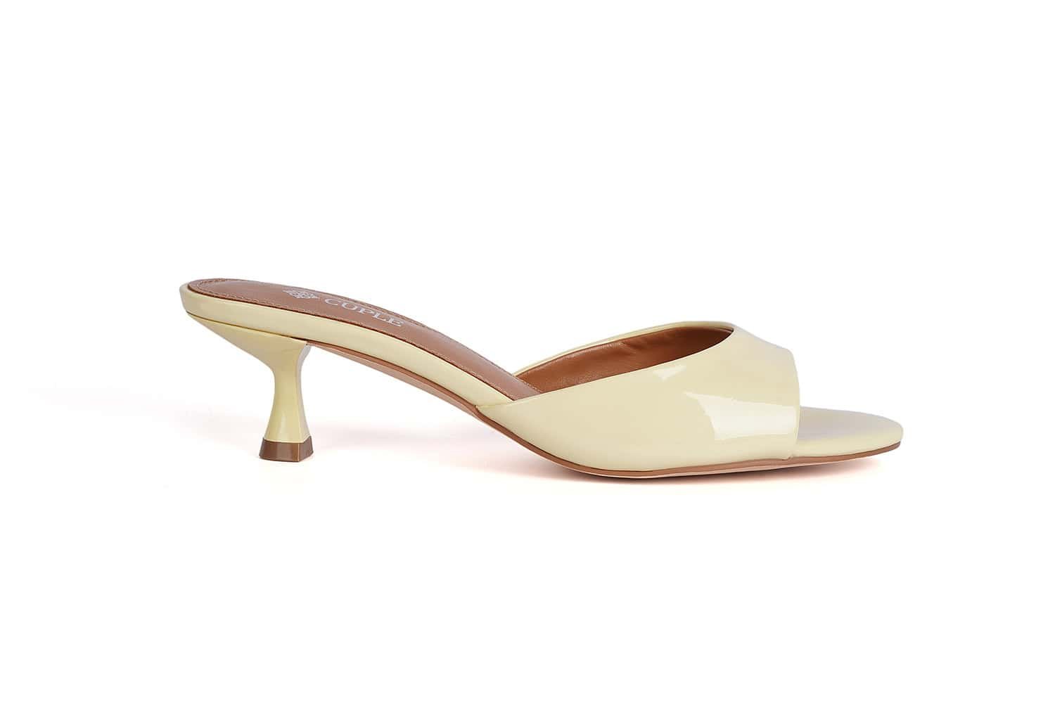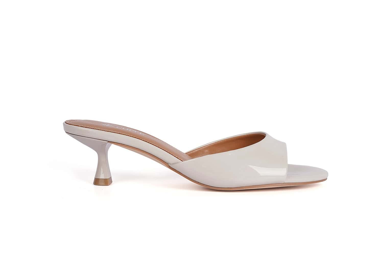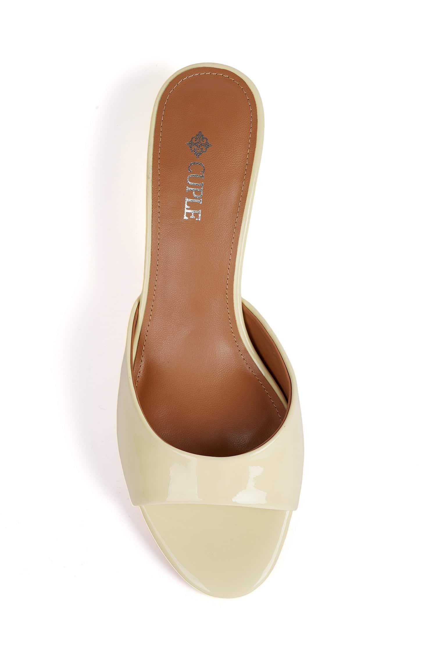 شبشب بيج مفتوح من الأمام مزين بأحجار لامعة