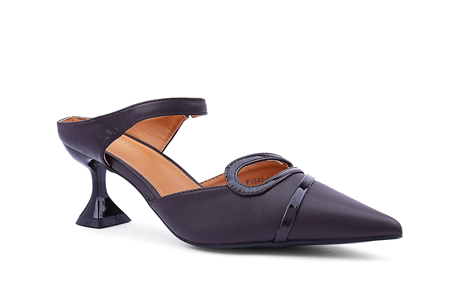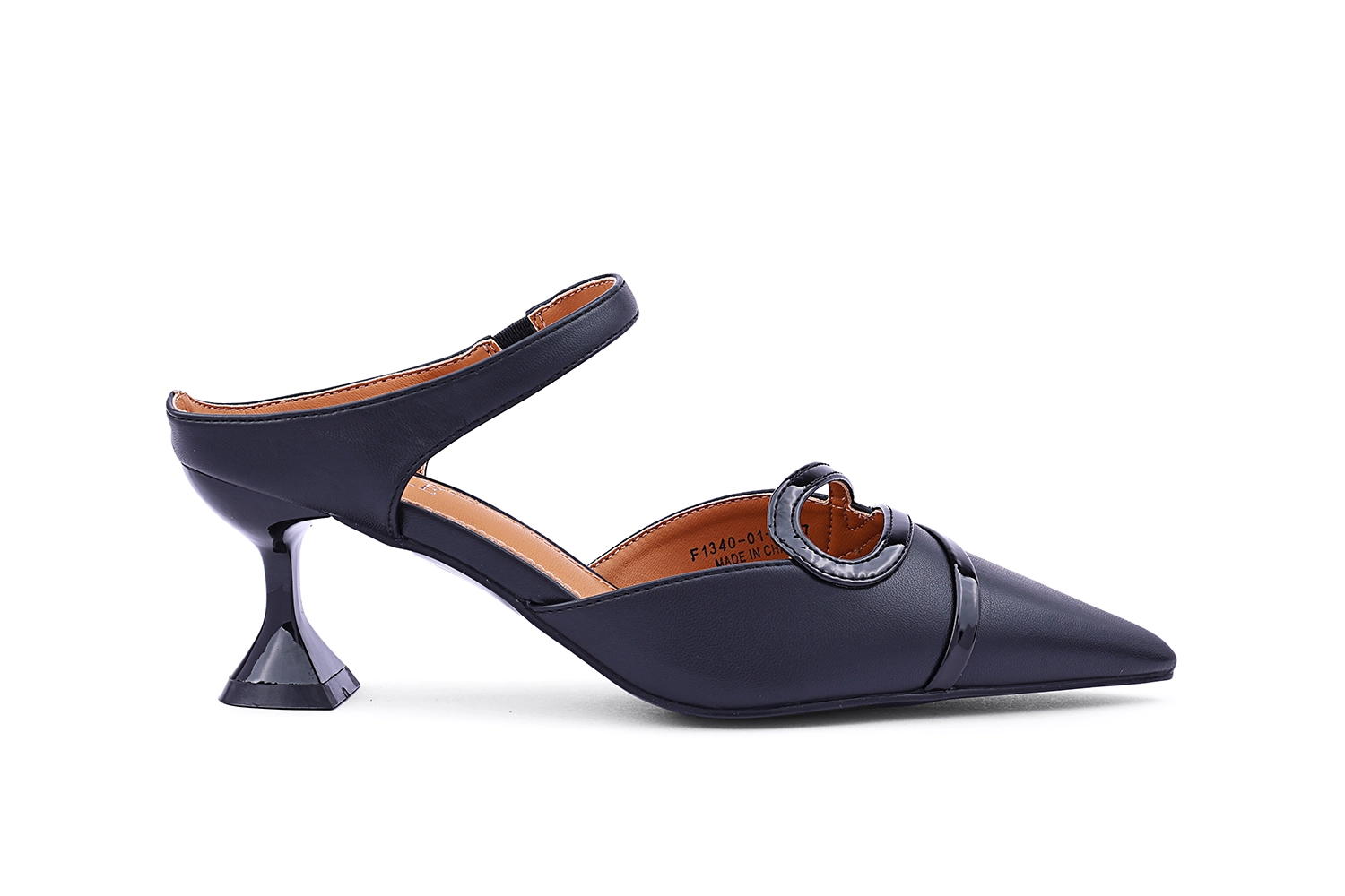 حذاء ميول بكعب أسود مع إبزيم كريستالي