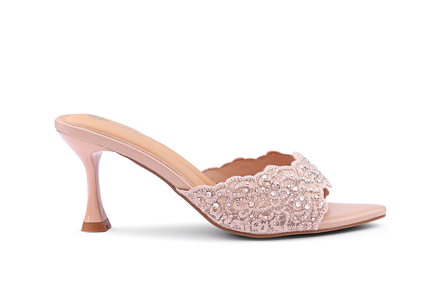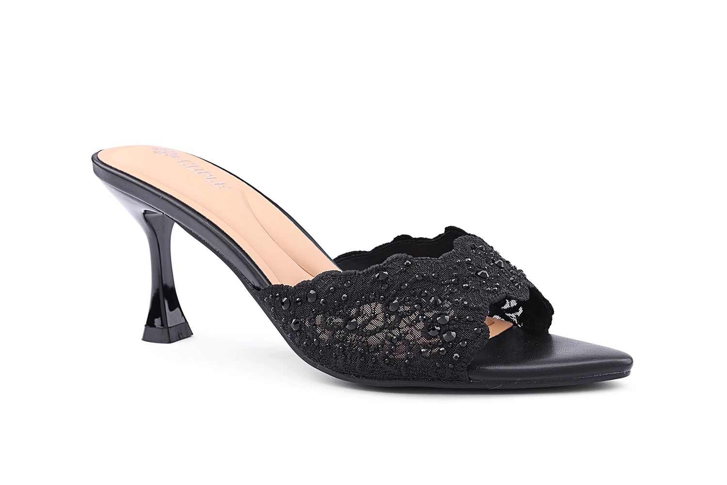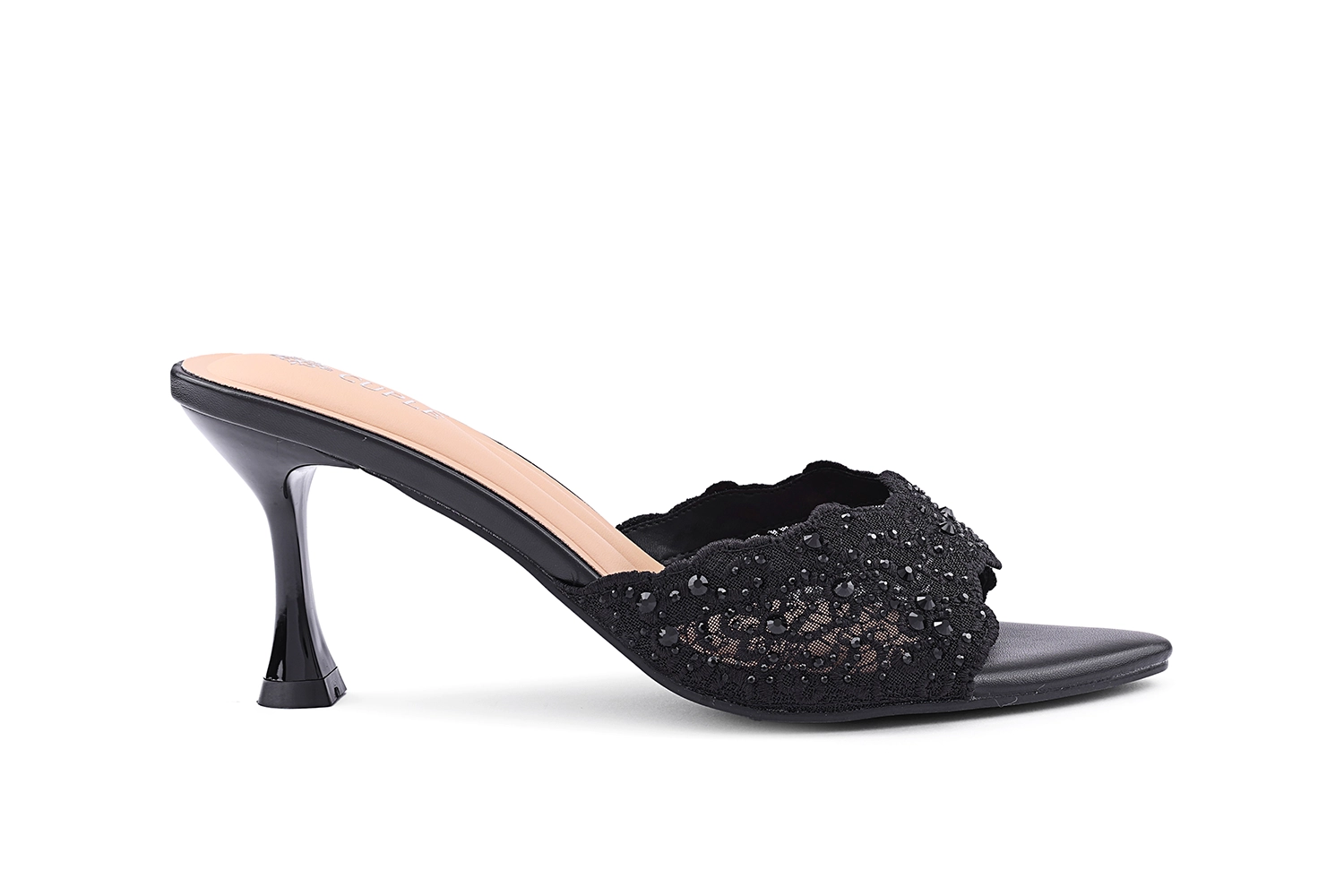 كعوب سلينجباك من الدانتيل مع زهرة كريستال