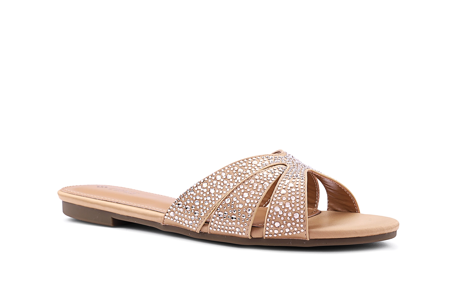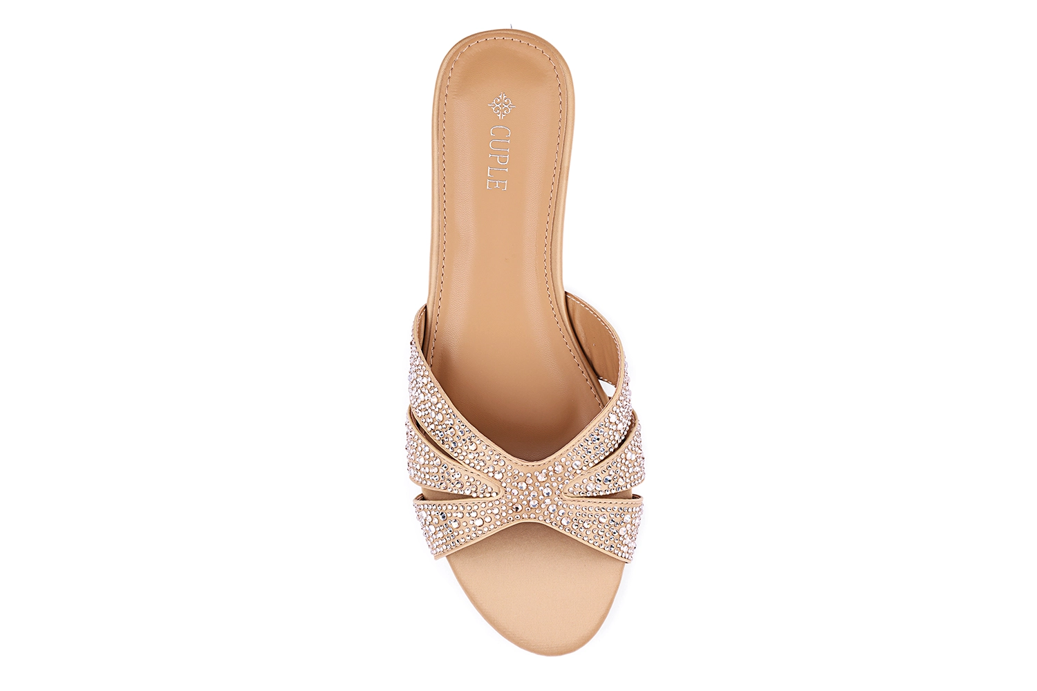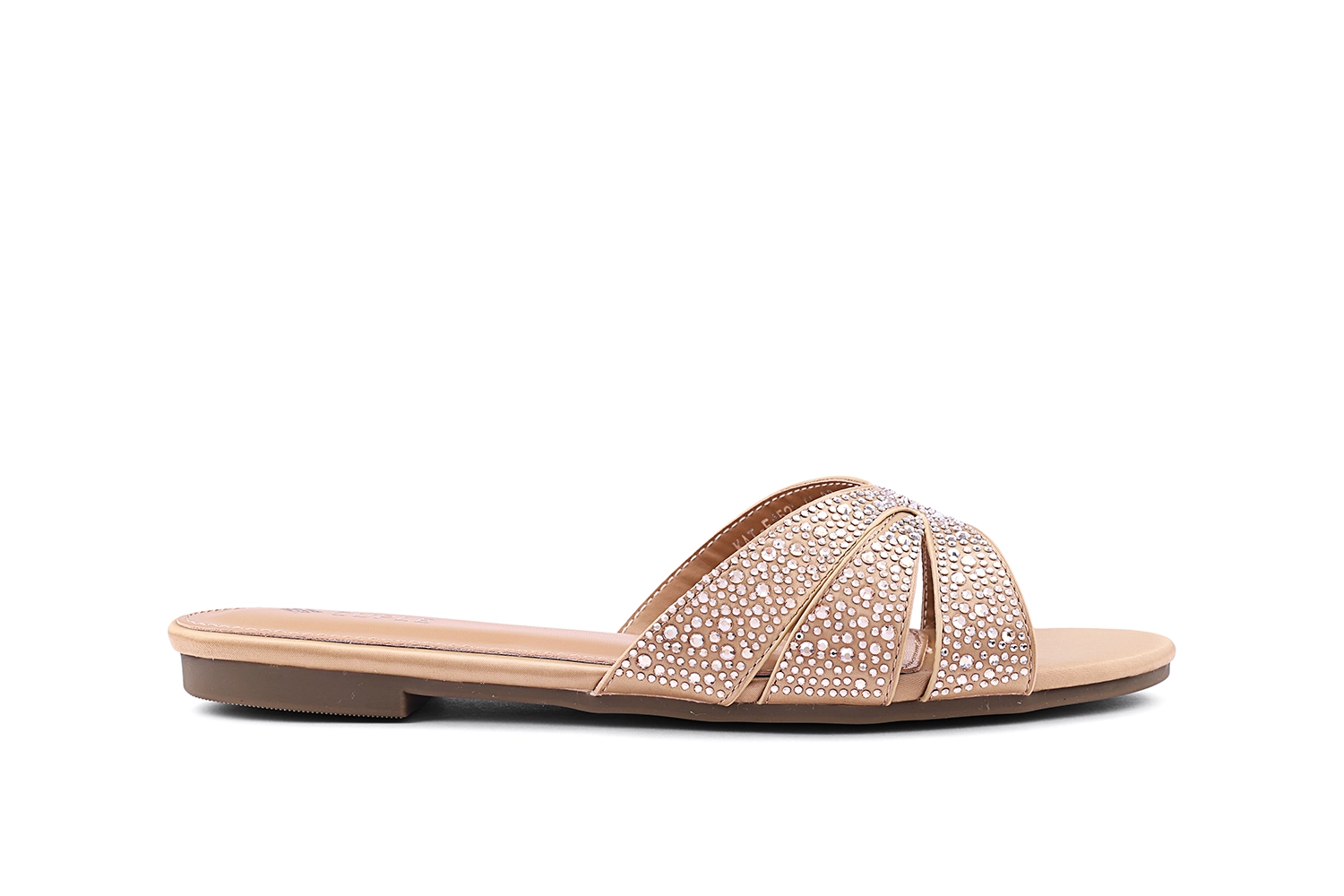 أحذية مسطحة بيج مفتوحة بتشطيب أنيق