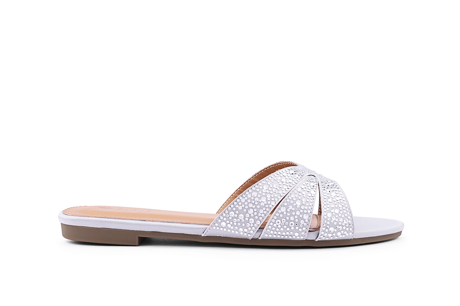 أحذية فلات مفتوحة بيضاء بتصميم أنيق