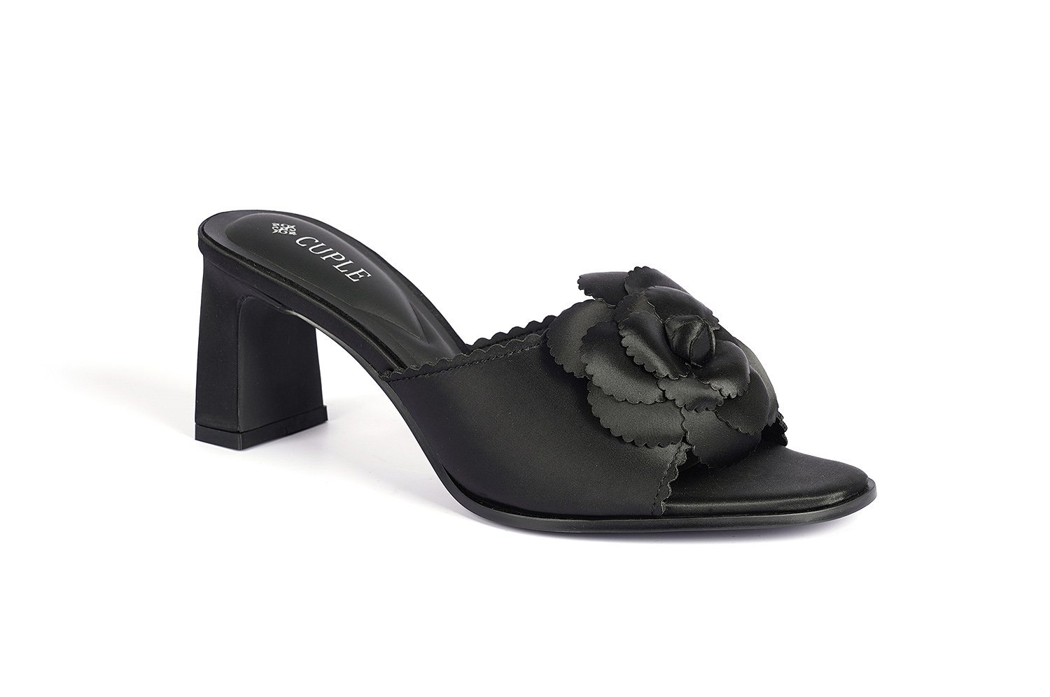 صندل بكعب قصير أسود مع أحزمة متقاطعة