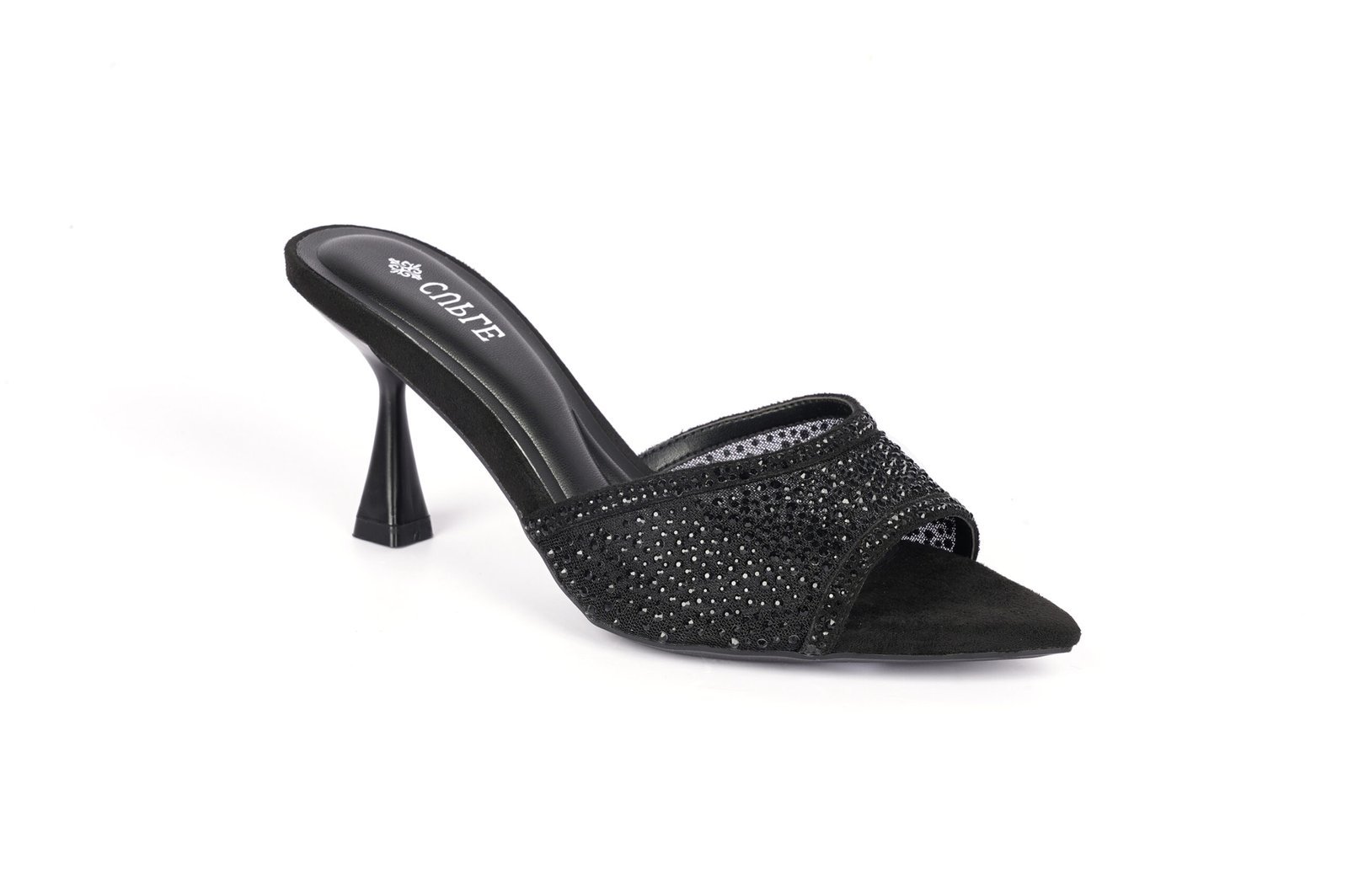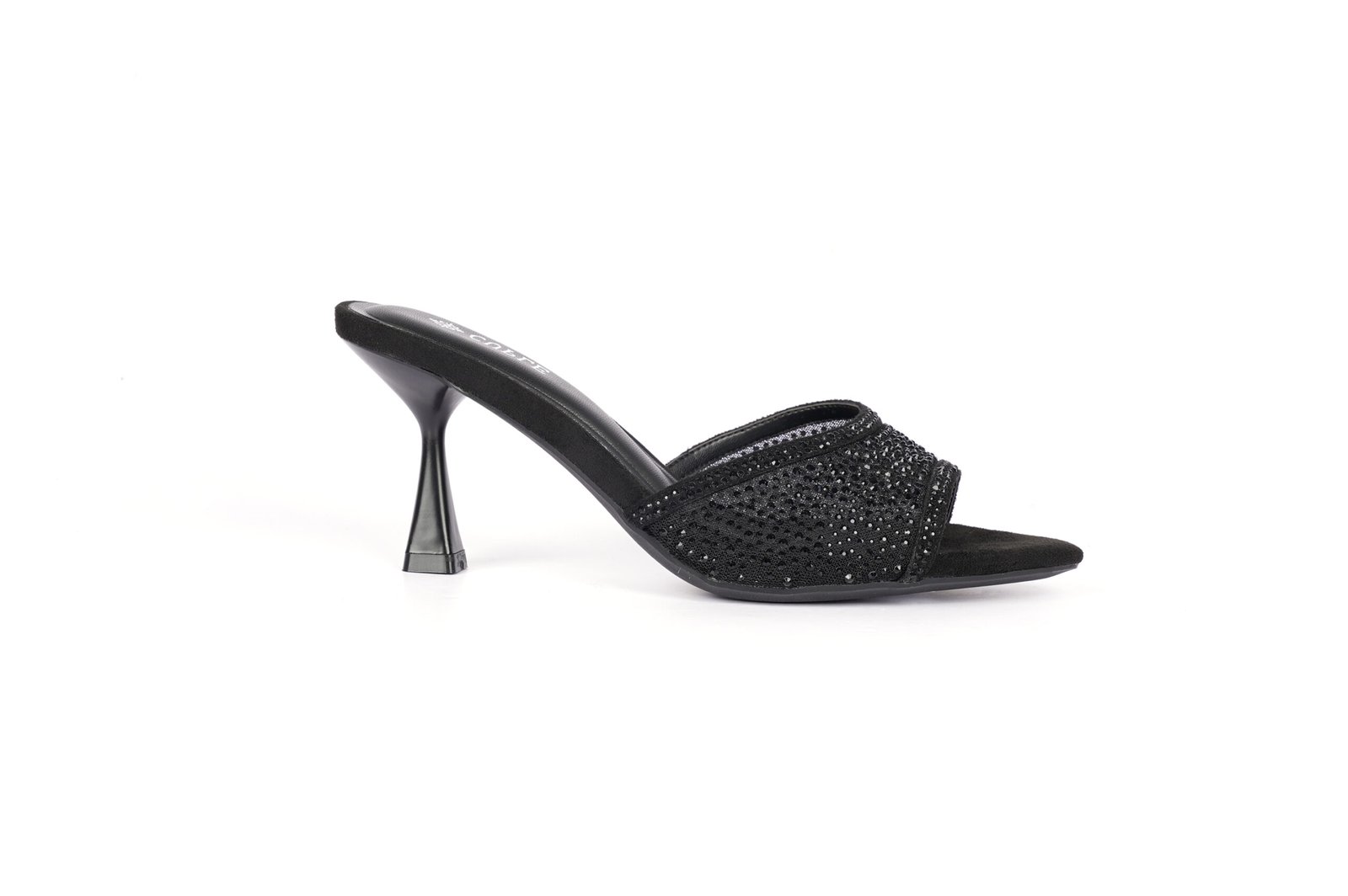 صندل بكعب قصير أسود مع أحزمة متقاطعة