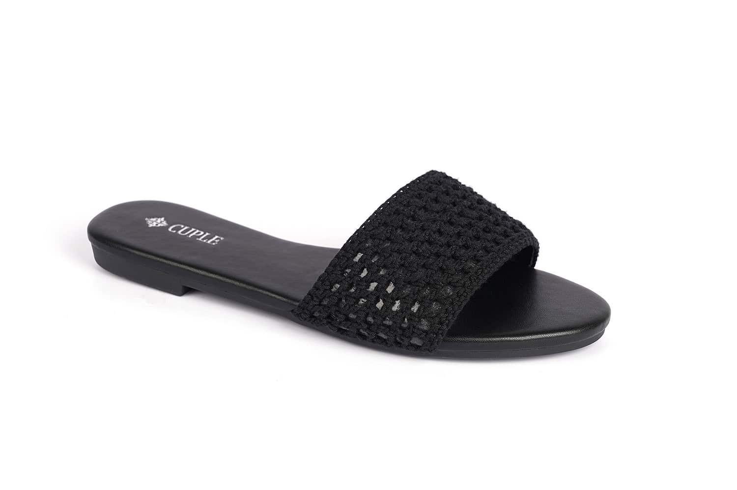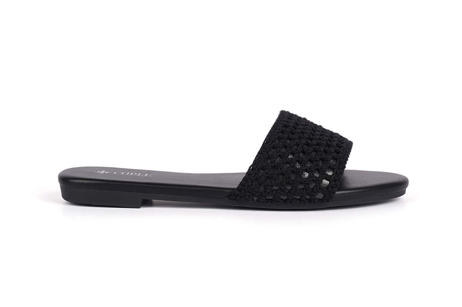 These black slide flats combine sophistication with studded accents for a fashionable statement.