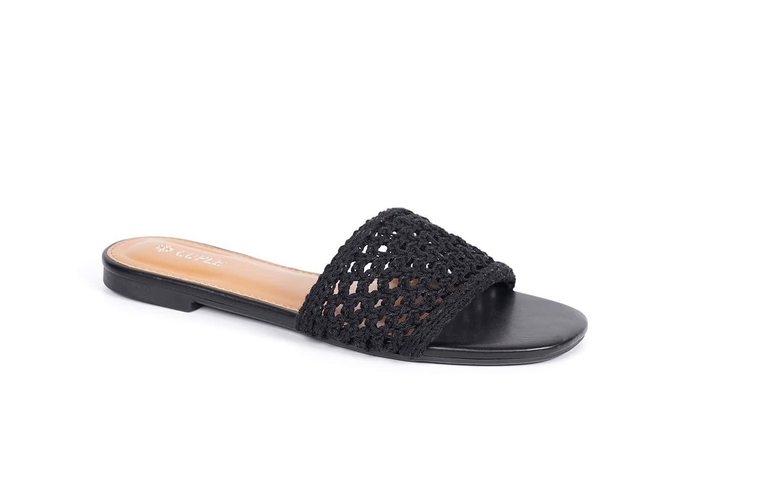 These brown slide flats combine sophistication and comfort with a stylish buckle design.