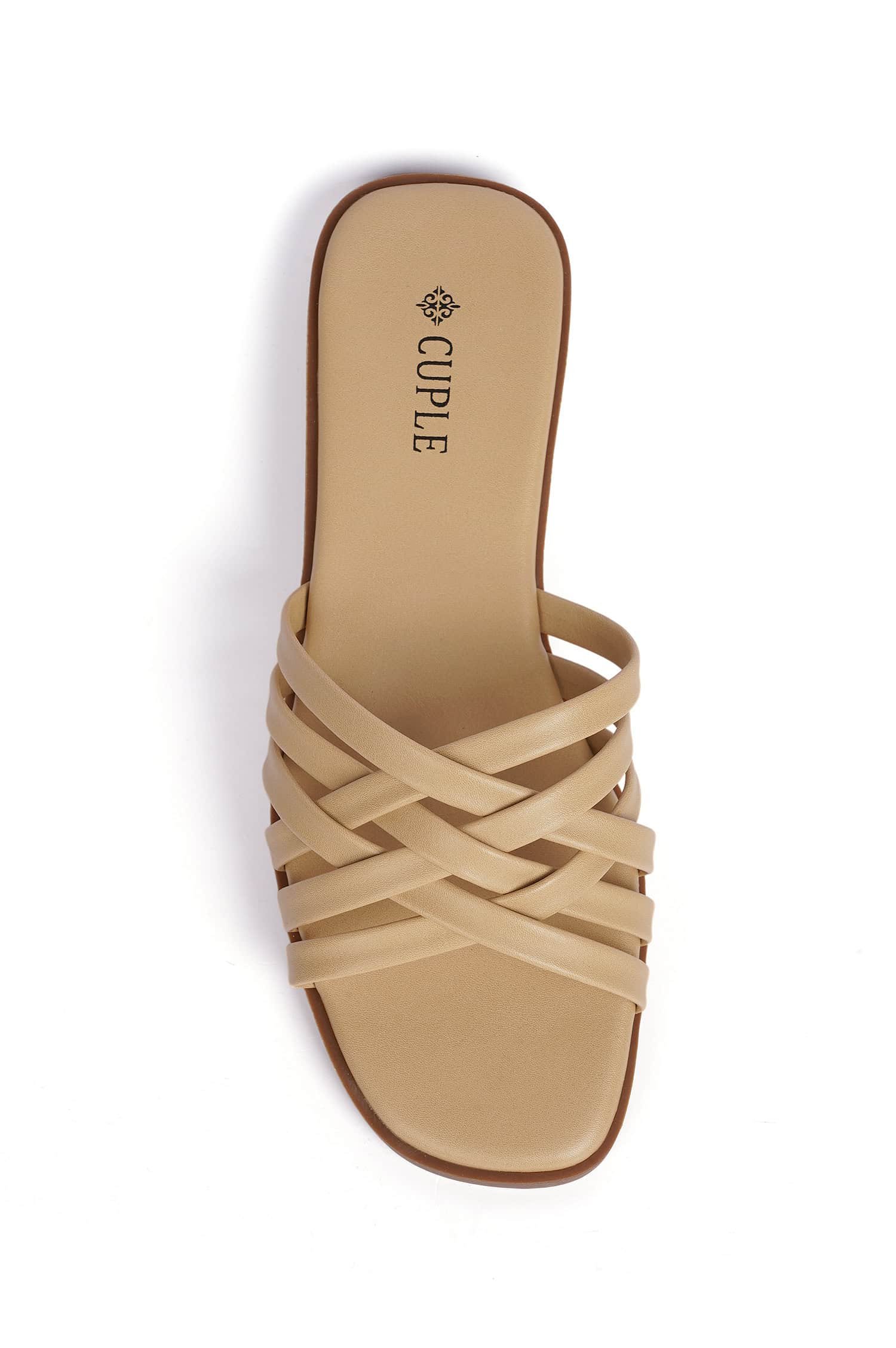 Stand out with these unique beige flats, crafted with a luxurious finish and stylish details.